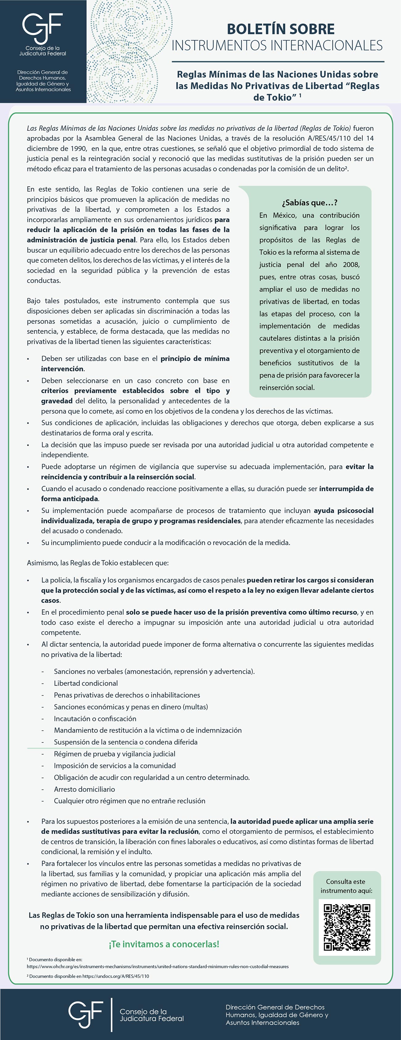 - Reglas Mínimas de las Naciones Unidas sobre las Medidas no privativas de la libertad. “Reglas de Tokio”